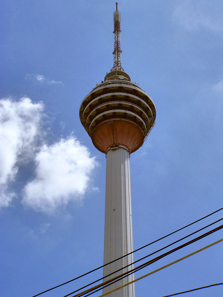 1996年5月に完成し、通信塔としては世界第4位の高さ (421m) で、東南アジアでは最も高いとか。展望台から見えるペトロナスツインタワーとともに、クアラルンプールのランドマークとなっています。ペトロナスツインタワーは452mですが、KLタワーが丘の上にあるためにこちらの方が高く見えます。
